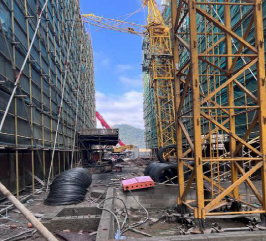 2022年11月6日,某工地夜间吊装作业时,发生一台QTZ80(6010)塔机塔身标准节断裂,而后发生倒塌事故,事故造成建筑物外脚手架破坏,司机受伤,后经事故现场查看,塔机长期存在超载现象,现场情况如下: