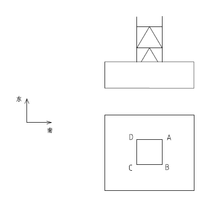 某项目工程需安装使用QTZ80(6010)塔机,使用地下节固定基础,在塔机进场安装前,安装单位对塔机基础水平度进行测量,测量地下节各支主弦偏差如下,后进行基础调平后,塔机正常安装使用。地下节水平测量偏差,以D点为零点: