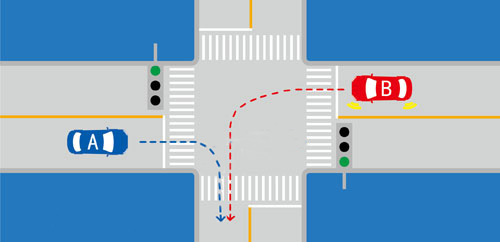 解析:通行原则【右转让左转, 左转让直行,转弯让直行】