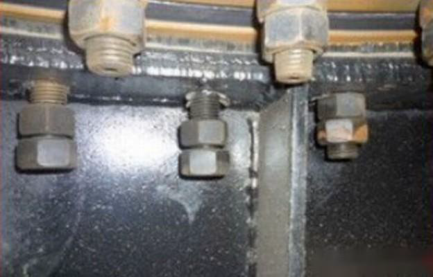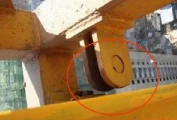 A.顶升液压千斤顶连接销轴的固定压板螺栓缺失一个