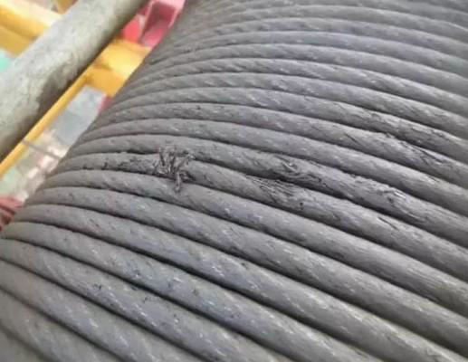 A.钢丝绳断丝局部聚集在一支绳股内,达到报废标准