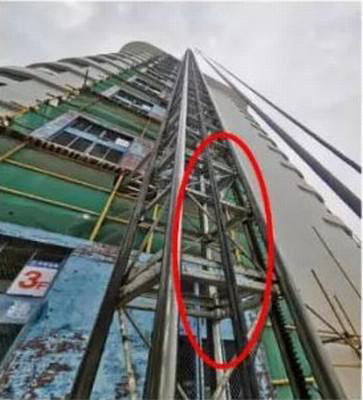 D.施工升降机电缆外皮破损