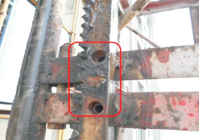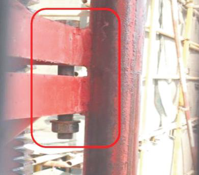 第2167题 图示施工升降机标准节连接螺杆缺失。