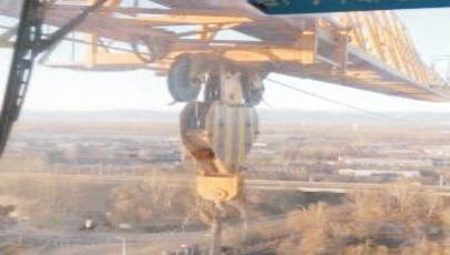 第2168题 图示塔式起重机扶墙架连接开口销(铁丝替代)符合规定。