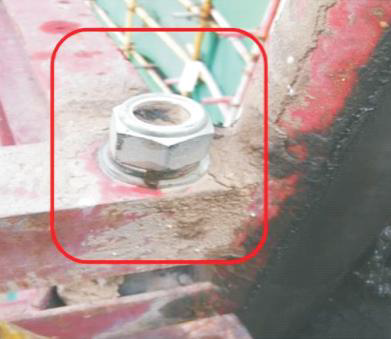 第2163题 图示施工升降机标准节螺栓不符合要求。