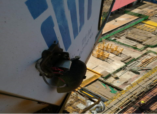 如图所示为塔吊司机室,存在的最主要安全隐患为()。