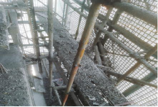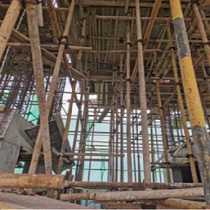 D.锯沫渣、模板、木方等易燃材料乱堆乱放,未及时清理归堆,堵塞通道