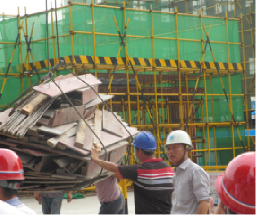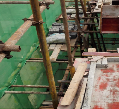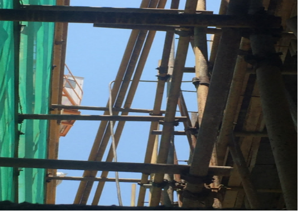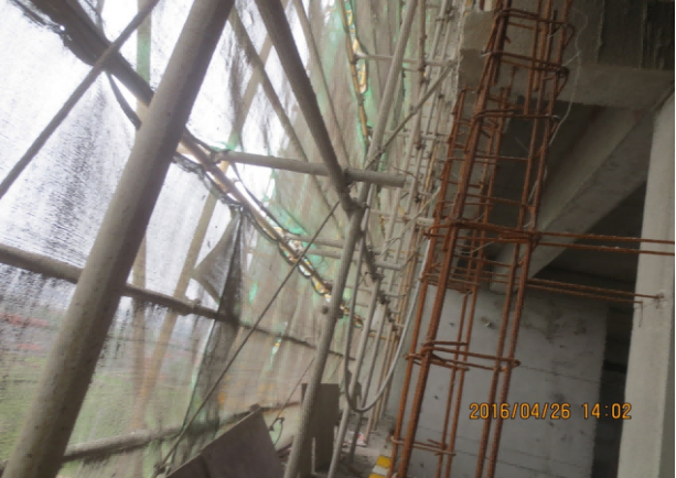 下图脚手架工程中主要问题是是安全网未挂设;抛撑设置不足;缺少层间封闭;剪刀撑缺失,能造成的伤害类型隐患是( )