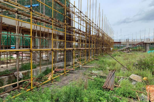 A.结构施工阶段电缆线路宜采用电缆埋地引入室内,严禁穿越脚手架引入