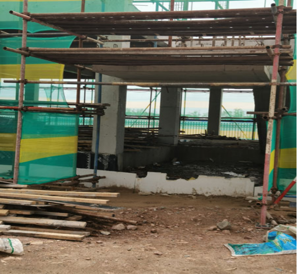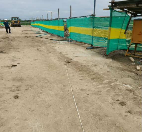 下图中电源线拖地,未进行绝缘挂设,电缆线路应采用埋地或架空敷设,严禁沿地面明设