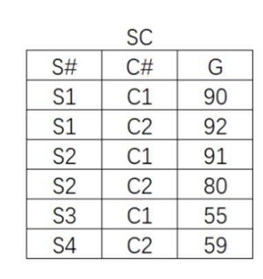 学生选课成绩表关系模式是SC(S#,C#,G),S#为学号,C#为课号,G为成绩,T=πS#,c#,(SC)/S表示()。