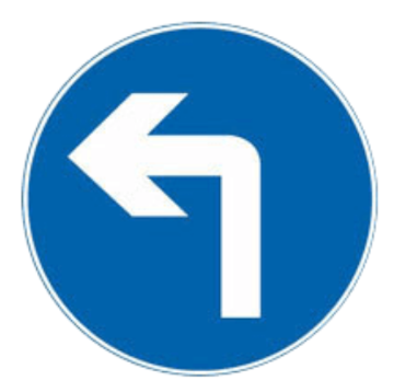 解析:本题主要考察道路交通标志。蓝色-指示,向左转弯:表示只准一切车辆向左转弯。此标志设在车辆必须向左转弯的路口以前适当位置。因此选择"向左转弯"。