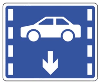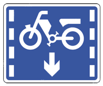 相关法规参考:GB5768.2-2022<<道路交通标志和标线第2部分:道路交通标志>>,6.25电动自行道标志,表示该道仅供电动自行通行。设在该道的起点及各交叉口的入口处,宜设置在车道的正上方。非机动车车道标志设置在车道正上方时,向下的箭头可以省略:在标志无法正对车道时,可调整箭头方向,指向道。