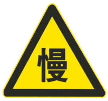 解析:本题主要考察道路交通标志。黄色警告标志已经写明了"慢",表示慢行。用以提醒车辆驾驶人减速慢行。此标志设在前方需要减速慢行的路段以前适当位置。因此选择"慢行"。