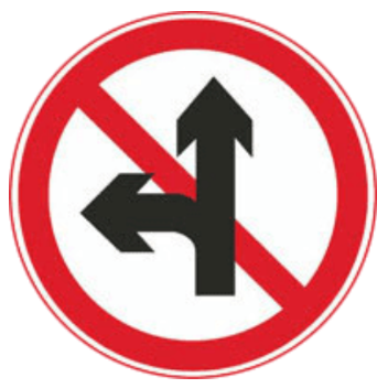 相关法规参考:GB5768.2-2022<<道路交通标志和标线第2部分:道路交通标志>>,5.25禁止直行和向左转弯(或直行和向右转弯)标志。表示前方路口禁止一切辆直行和向左转弯(或直行和向右转弯)。设在禁止直行和向左转弯(或直行和向右转弯)的路口前。有时间、车种等特殊规定时,应用辅助标志说明,也可附加图形。