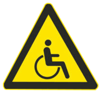 相关法规参考:GB5768.2-2009<<道路交通标志和标线第2部分:道路交通标志>>,4.31注意残疾人标志,用以提醒车辆驾驶人减速慢行,注意残疾人。设在康复医院、残疾人学校等残疾人经常出人地点前适当位置。