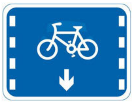 相关法规参考:GB5768.2-2022<<道路交通标志和标线第2部分:道路交通标志>>,6.23非机动车车道标志,表示该车道仅供非机动车通行。设在该道的起点及各交叉口的入口处,宜设置在道的正上方。非机动车道标志设置在道正上方时,向下的箭头可以省略;在标志无法正对车道时,可调整箭头方向,指向车道。若该车道仅供自行车行驶时,应用辅助标志说明。