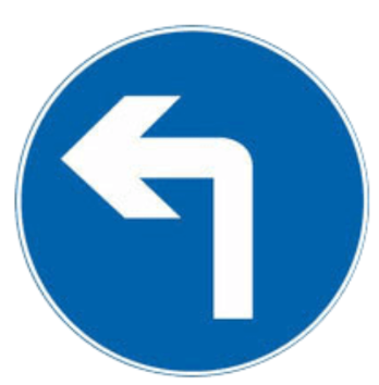解析:本题主要考察道路交通标志。蓝色-指示,向左转弯:表示只准一切车辆向左转弯。此标志设在车辆必须向左转弯的路口以前适当位置。因此选择"向左转弯"。