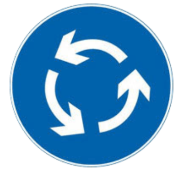 相关法规参考:GB5768.2-2022<<道路交通标志和标线第2部分:道路交通标志>>,6.7环岛行驶标志,表示一切车辆只准靠右环行,环内车辆具有优先权,车辆进入环岛时应让环内辆优先通行。设在进入环岛前、面向路口来方向的适当位置。