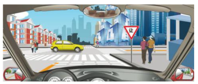 解析:本题主要考察道路交通标志。图中倒三角里面一个"让"字,是减速让行标志,通过时要减速慢行。因此选择"正确"。