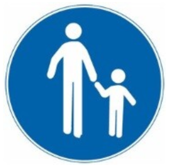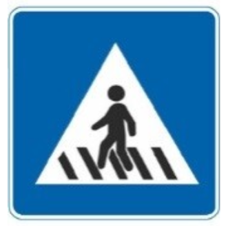相关法规参考:GB5768.2-2022<<道路交通标志和标线第2部分:道路交通标志>>,7.13人行横道标志,表示该处为人行横道,机动车驾驶人应注意观察行人,遇行人已进入人行横道时应停车让行人通过。标志颜色为蓝底、白三角形、黑图形。可在人行横道标志外加10cm宽荧光黄绿的边框,并不应减小人行横道标志的尺寸。设在人行横道两端适当位置,并面向来车方向。该标志应与人行横道线同时使用。无信号灯控制的人行横道两端应设置人行横道标志,已设置信号灯、停车让行标志、减速让行标志的路段或路口,可不设此标志。人行横道线不易被驾驶人发现时,可提前设置"注意行人"的警告标志。