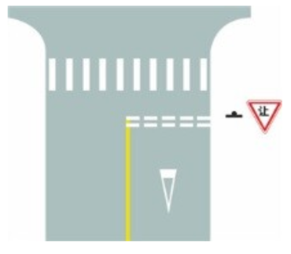 相关法规参考:GB5768.3-2009<<道路交通标志和标线第3部分:道路交通标线>>,5.6.2减速让行线表示车辆在此路口应减速让干道车辆先行。设有"减速让行"标志的路口,除路面条件无法施划标线外均应设置减速让行标线。减速让行线为两条平行的虚线和一个倒三角形,颜色为白色。双向行驶的路口,白色虚线长度应与对向车行道分界线连接;单向行驶的路口,白色虚线度应横跨整个路面。