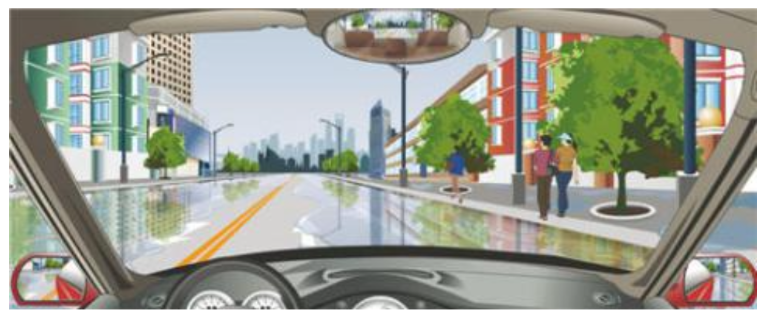 解析:本题主要考察避让行人和非机动车的文明驾驶。路面有积水要低速缓慢通过,既能保证安全,又能防止水花溅到行人。因此选择"低速缓慢通过"。
