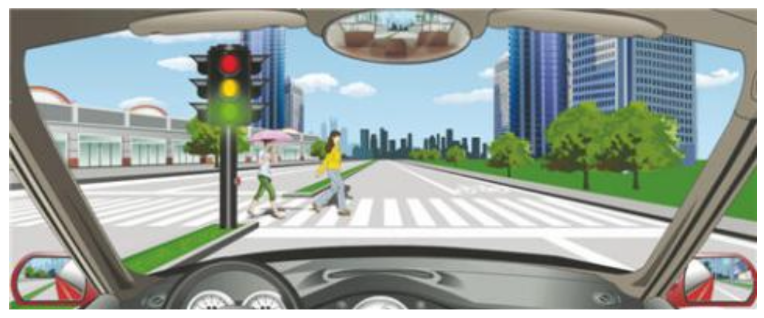 驾驶机动车在路口遇到这种情况要随时准备停车礼让。