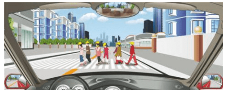 第148题 行车中遇列队横过道路的学生时,应怎样做?