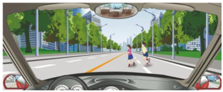 驾驶机动车在人行横道前遇到这种情况一定要减速慢行。