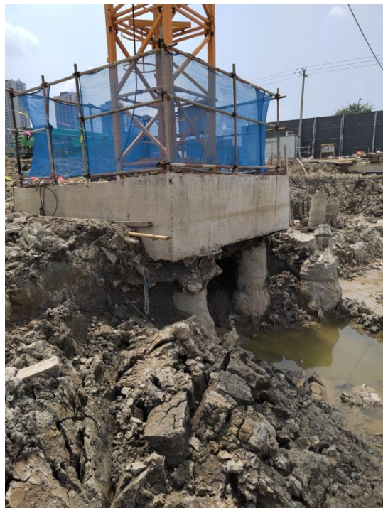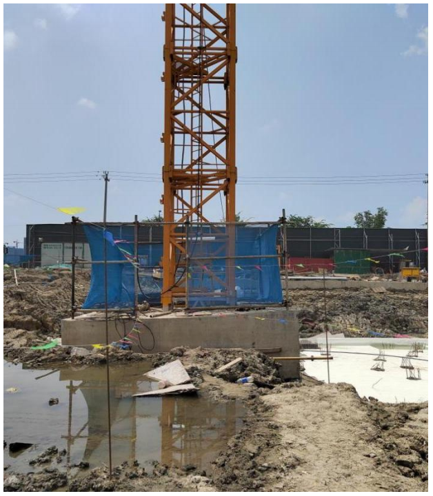 图示为某工程因地下室顶板浇筑时,将塔机标准节一起进行浇筑,地下室顶板浇筑前该塔机可正常使用,地下室顶板浇筑后该塔机()。