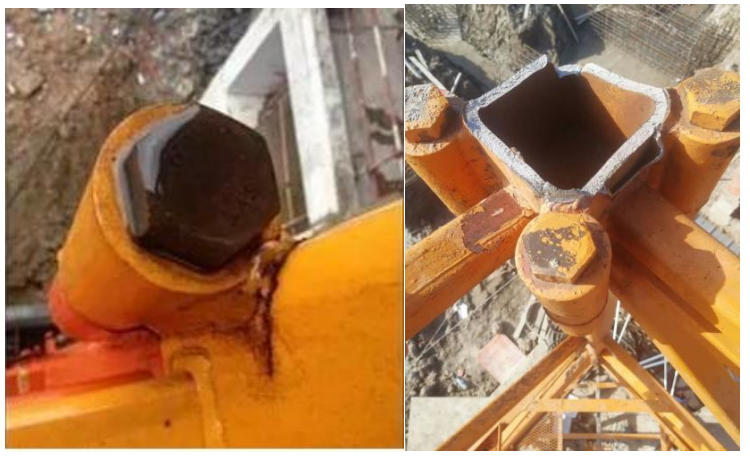 下图是塔机标准节主弦杆出现开裂后,未及时处理,最终导致塔机整体倾覆事故的发生,造成标准节主弦杆开裂的原因有()。