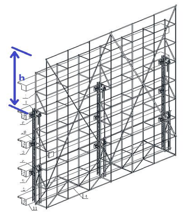 如图所示,架体悬臂高度h指附着支承结构中最高一个支承点以上的架体高度不得大于架体高度的()且不得大于()。