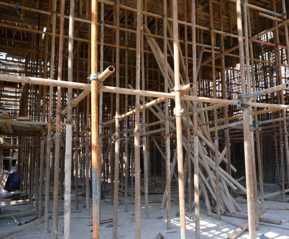 下图是扣件式钢管作为模板支架扫地杆设置示意图,下面关于模板支架扫地杆描述正确的是:()