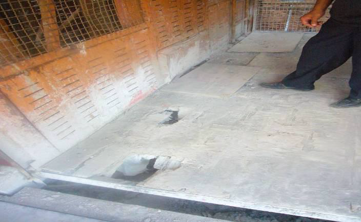 A.吊笼底板破损