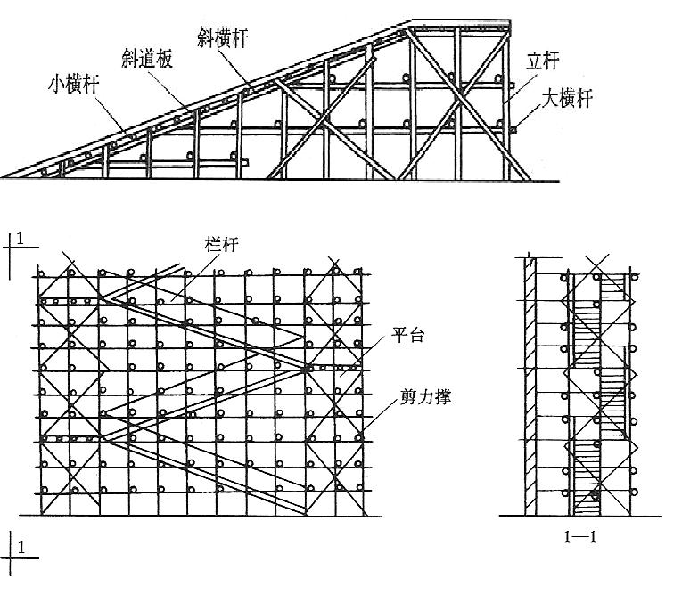 下图是脚手架两种斜道搭设示意图,下面关于其搭设描述正确的是()。
