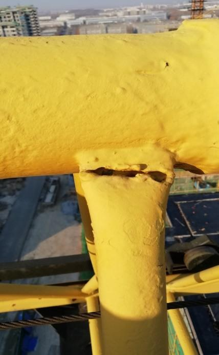第285题 图示塔式起重机附着框连接处间隙过大。( )