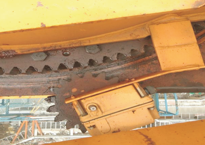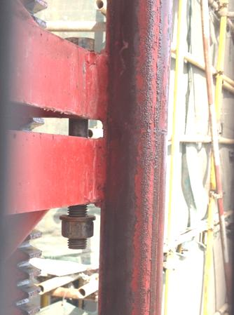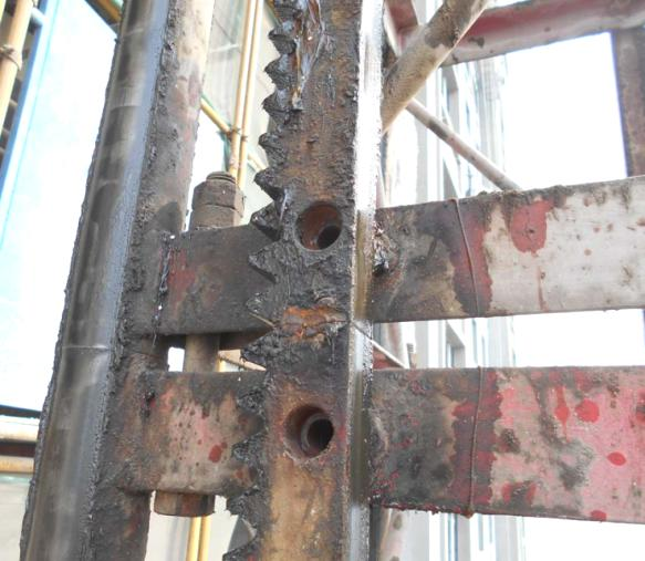 第293题 图示施工升降机导轨架标准节与齿条连接螺栓缺失。( )