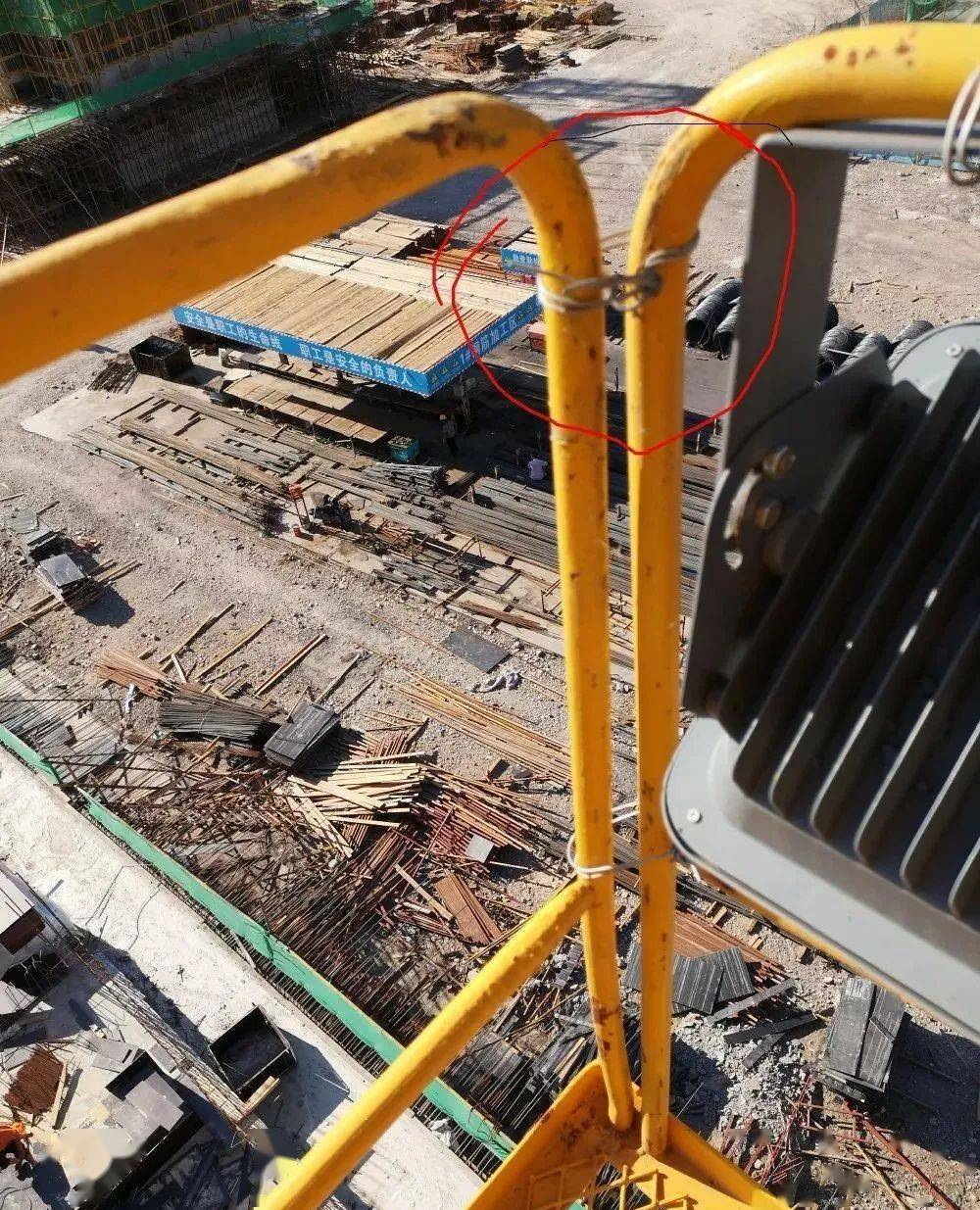 D.塔式起重机平台防护栏杆材质不符合要求