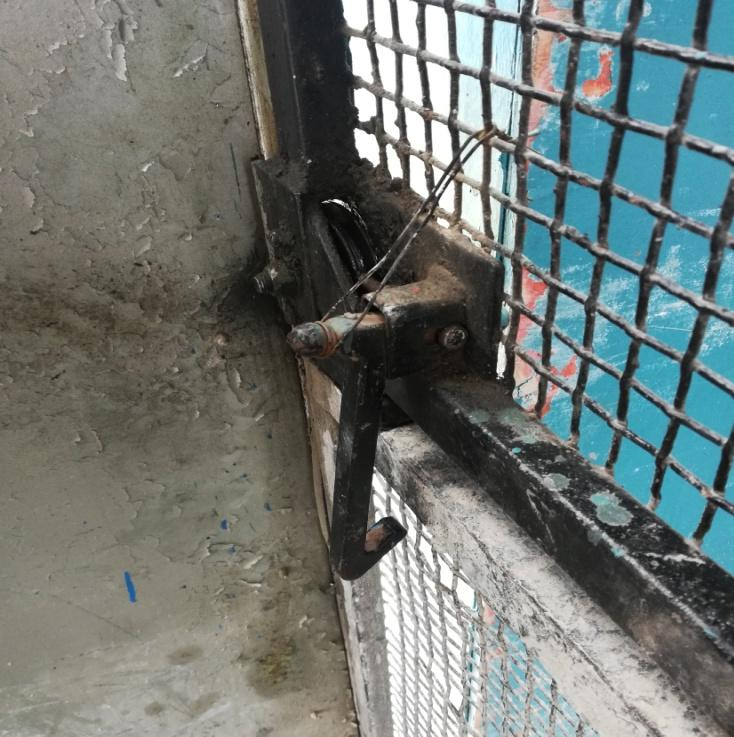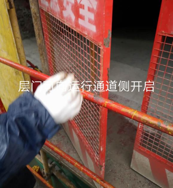 D.施工升降机楼层门门栓缺失