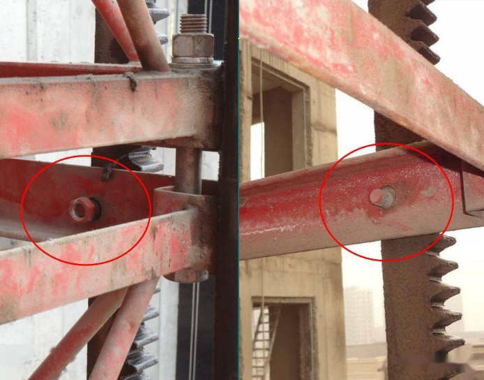 B.附墙支座处连接螺栓螺母下部未设置垫片