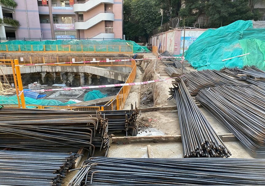 D.钢筋材料集中堆放