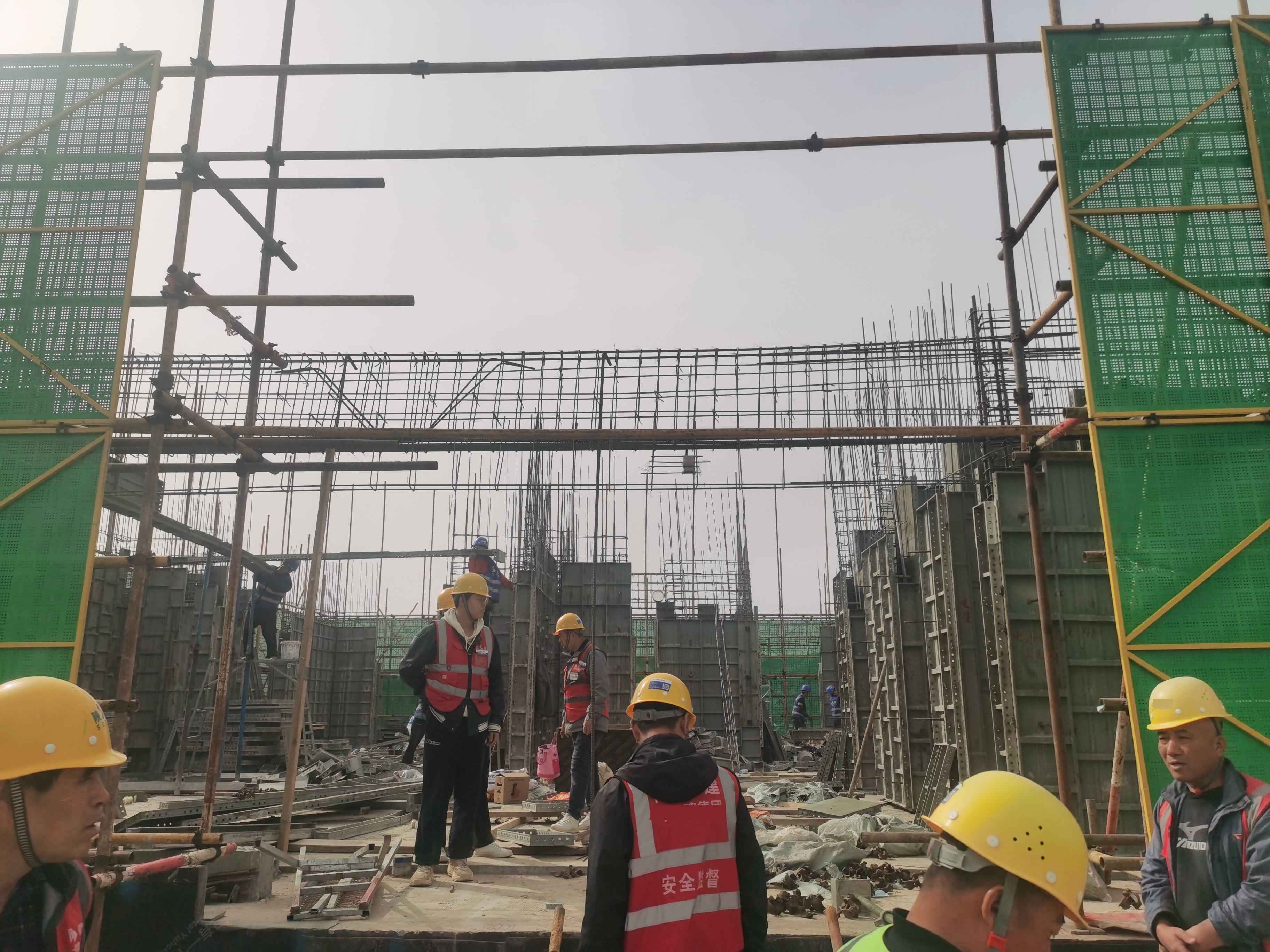 B.外防护架防护钢板有缺失