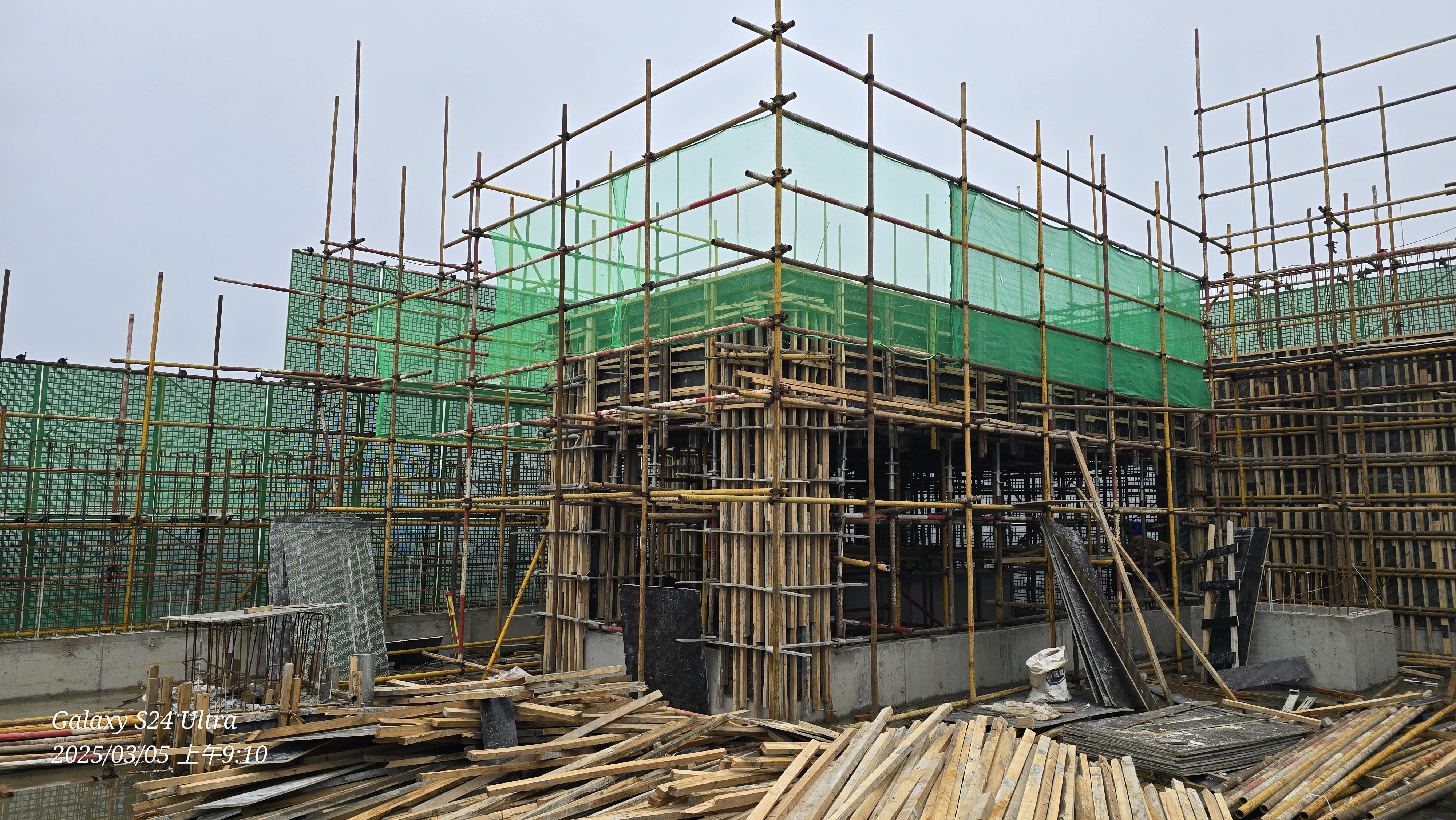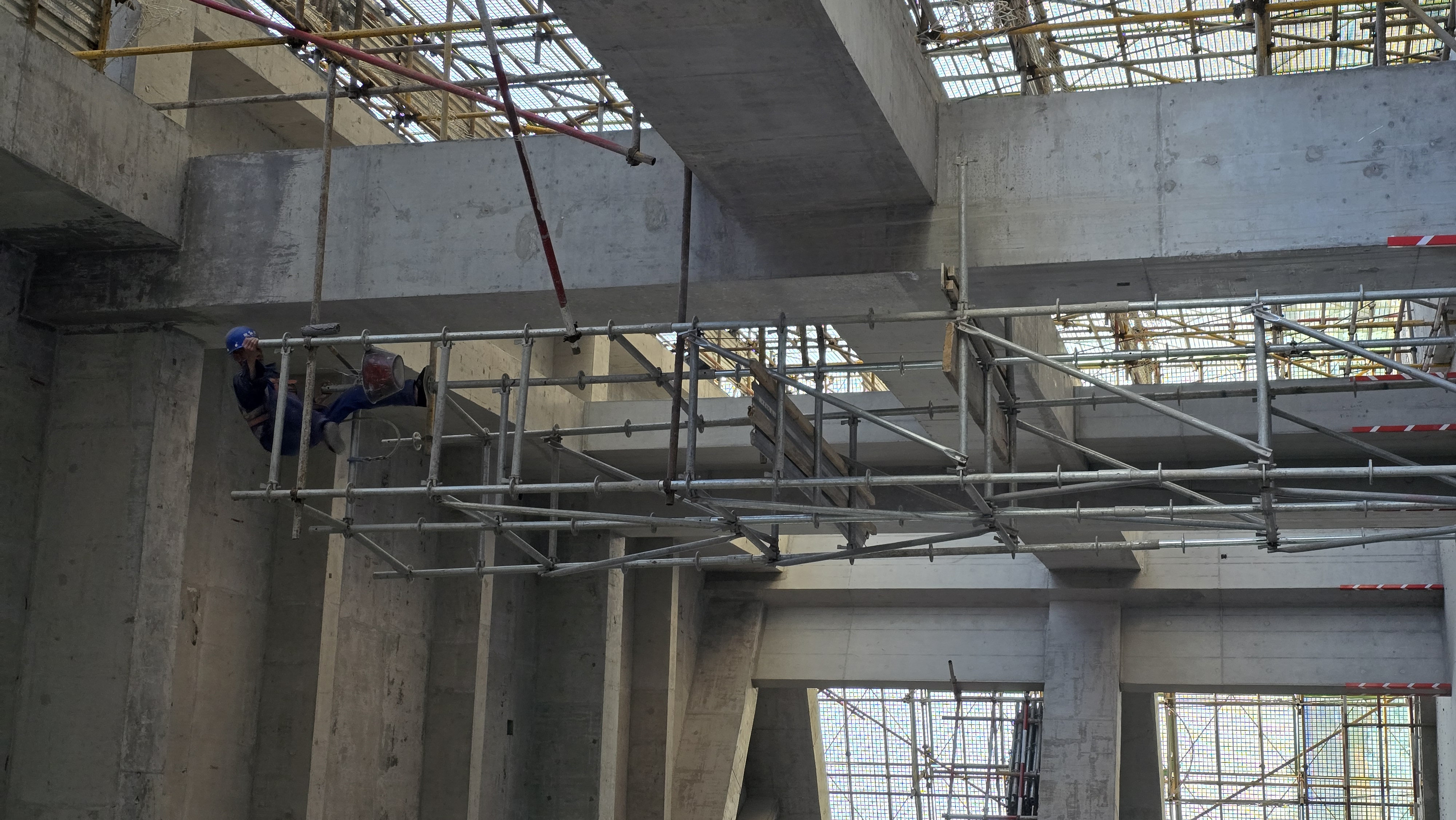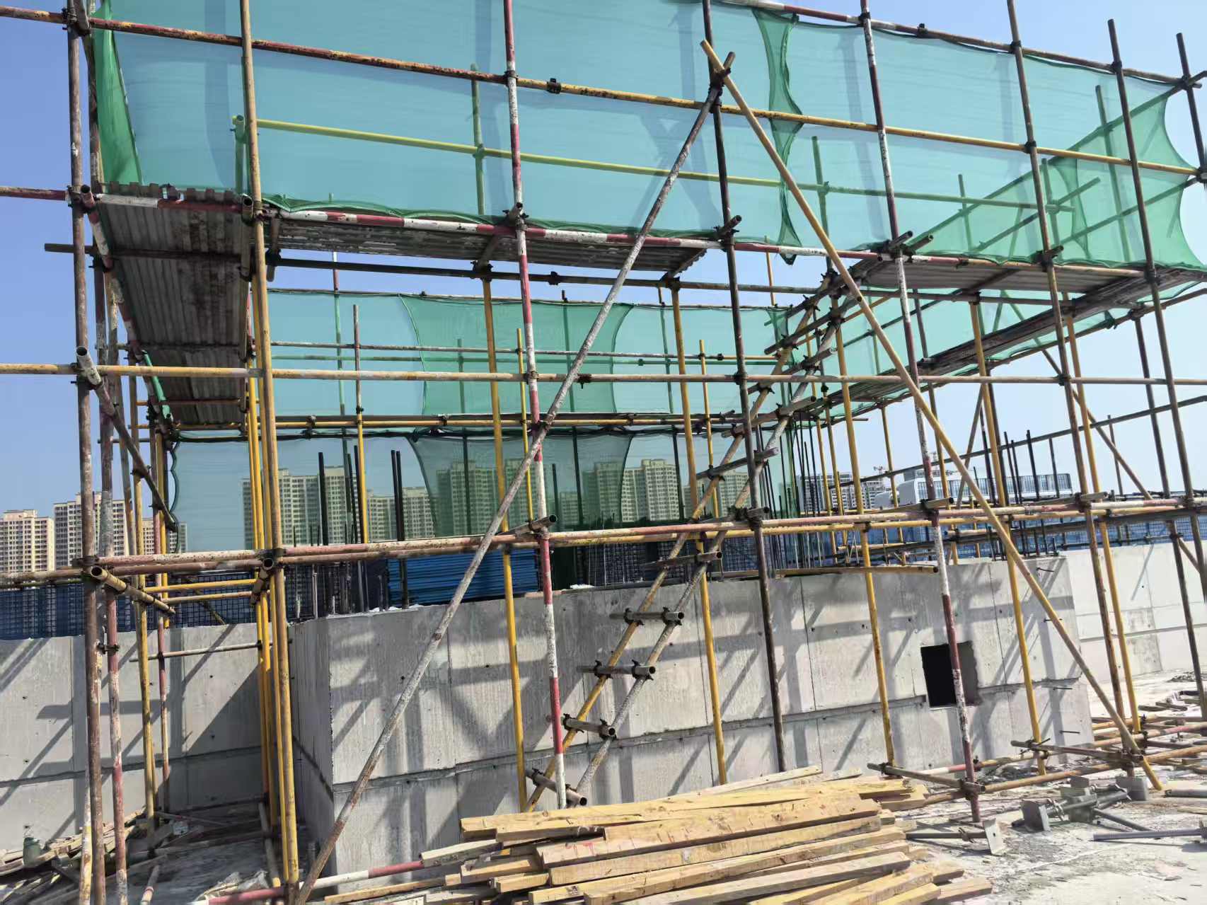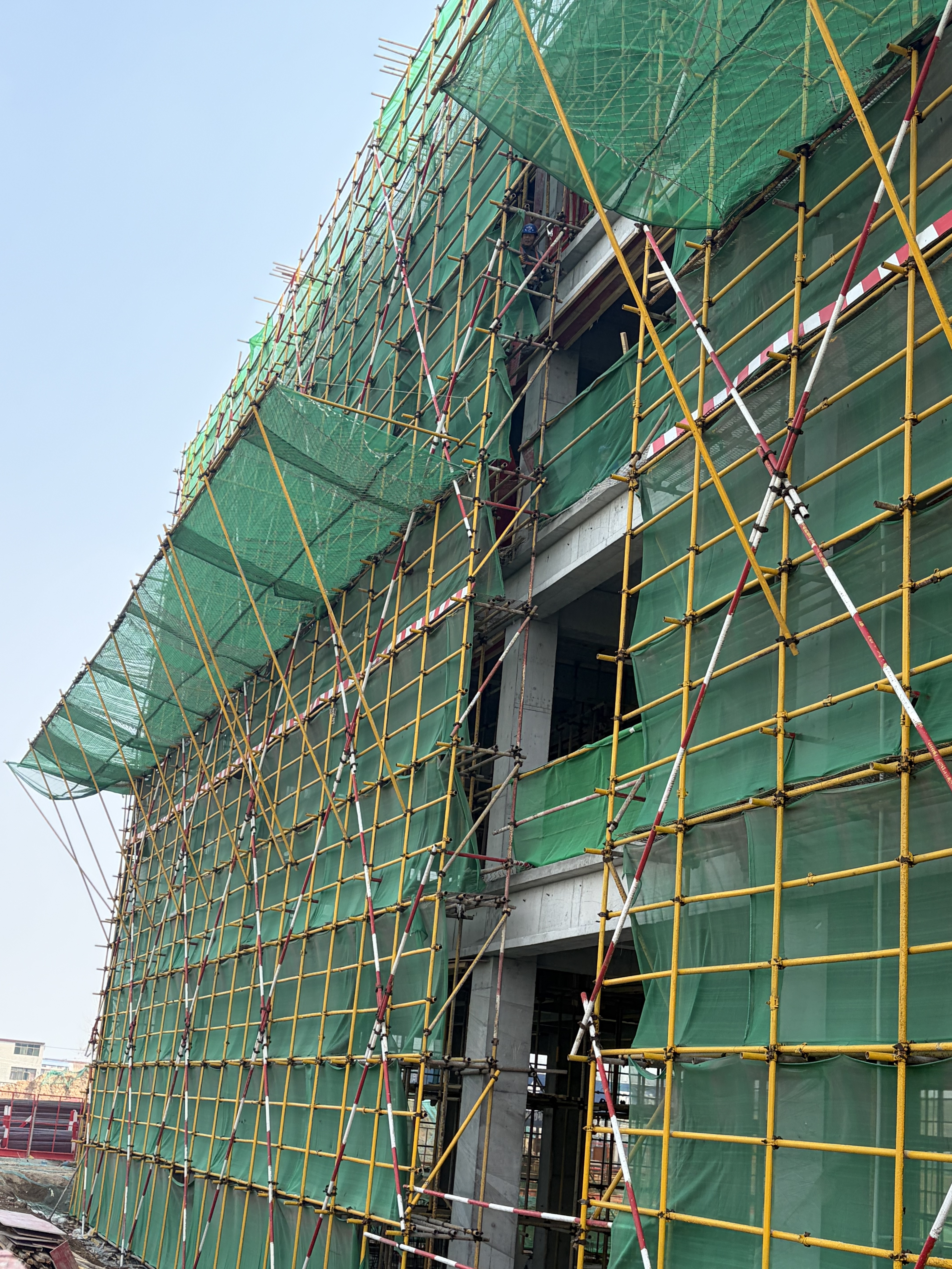 C.脚手架防护网缺失