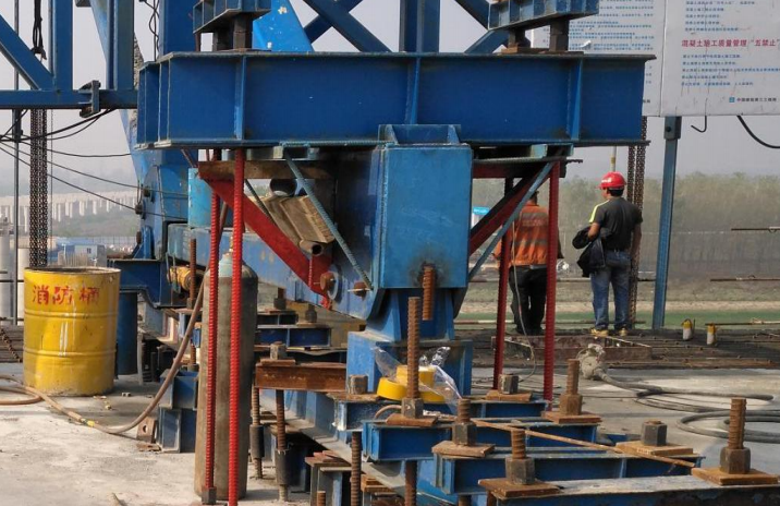 第349题 图示悬臂施工挂篮主桁架后压梁锚固螺帽应安装双螺母。( )