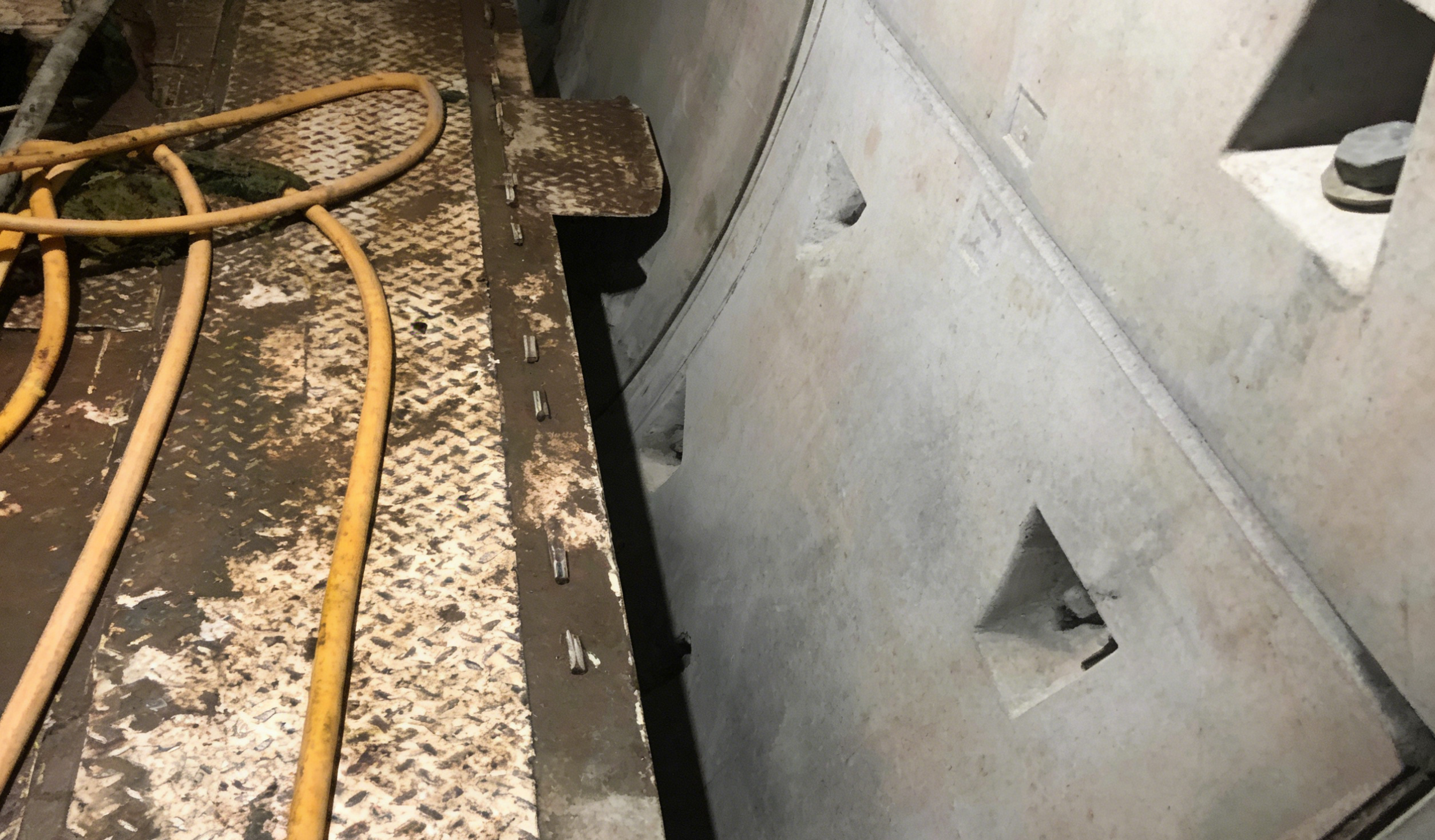 第350题 图示存在的隐患主要是盾构机台车走道板与管片间间隙过大。( )