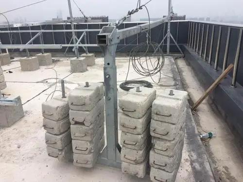 第359题 图示高处作业吊篮配重块不足、损坏,未设置防移动措施,未做整体连接,存在隐患。( )