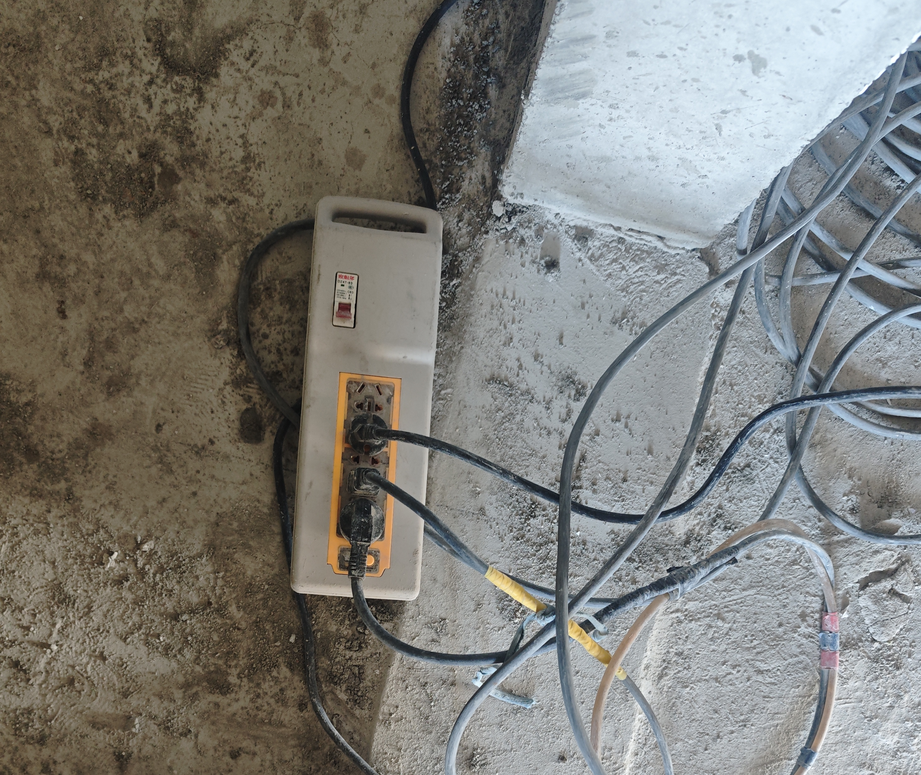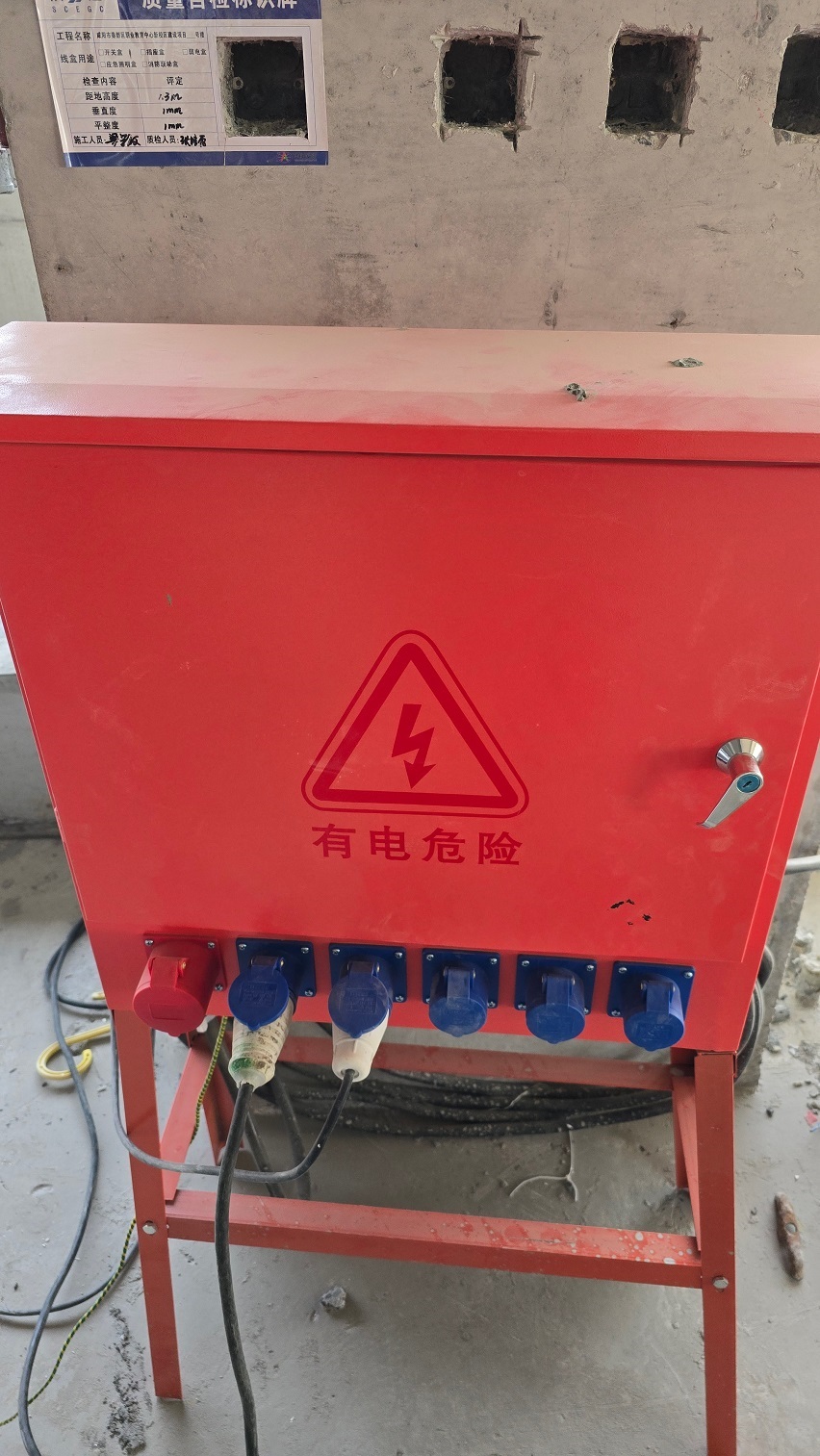 C.配电箱线缆直接缠绕在脚手架钢管上且无绝缘措施