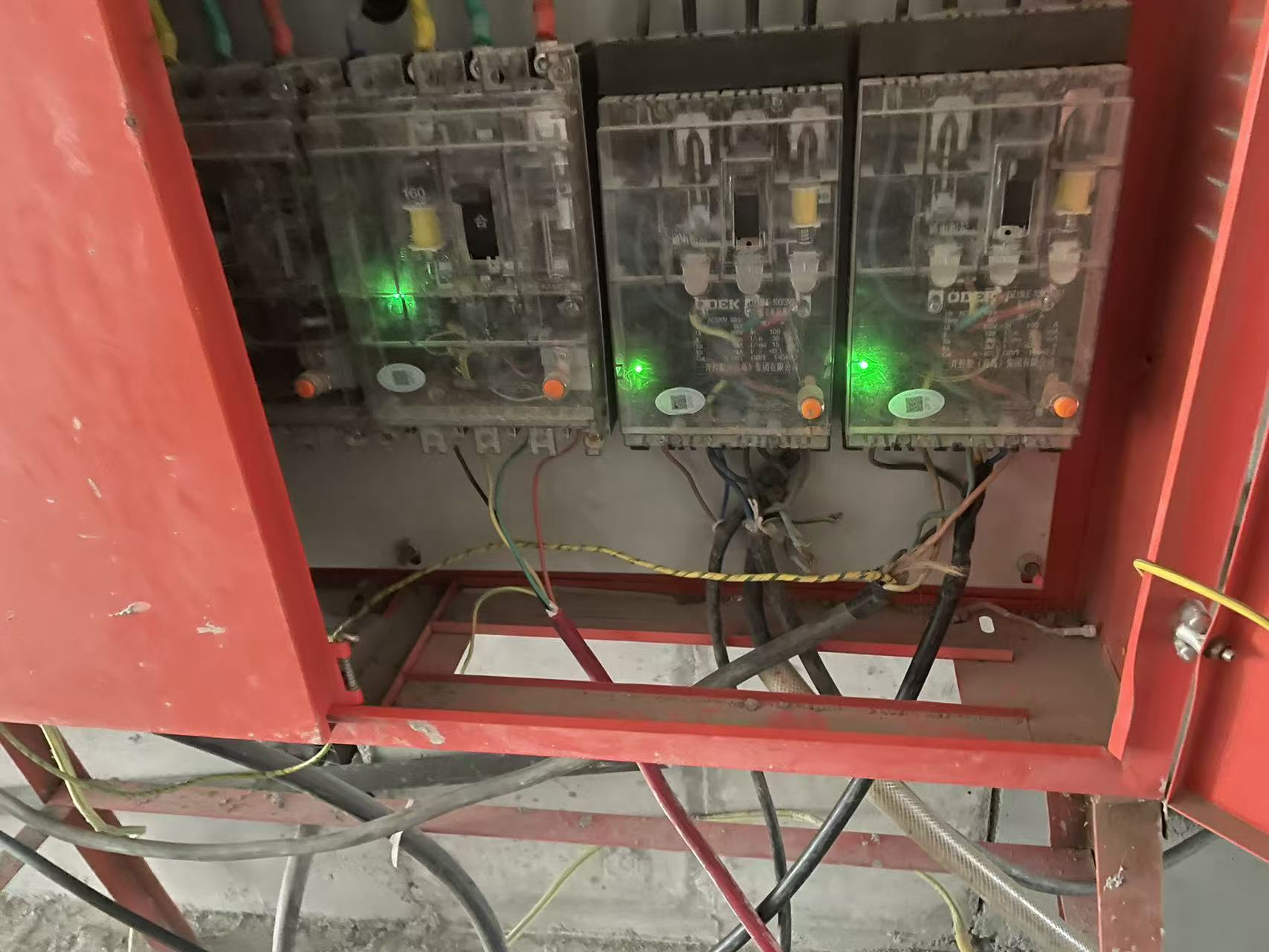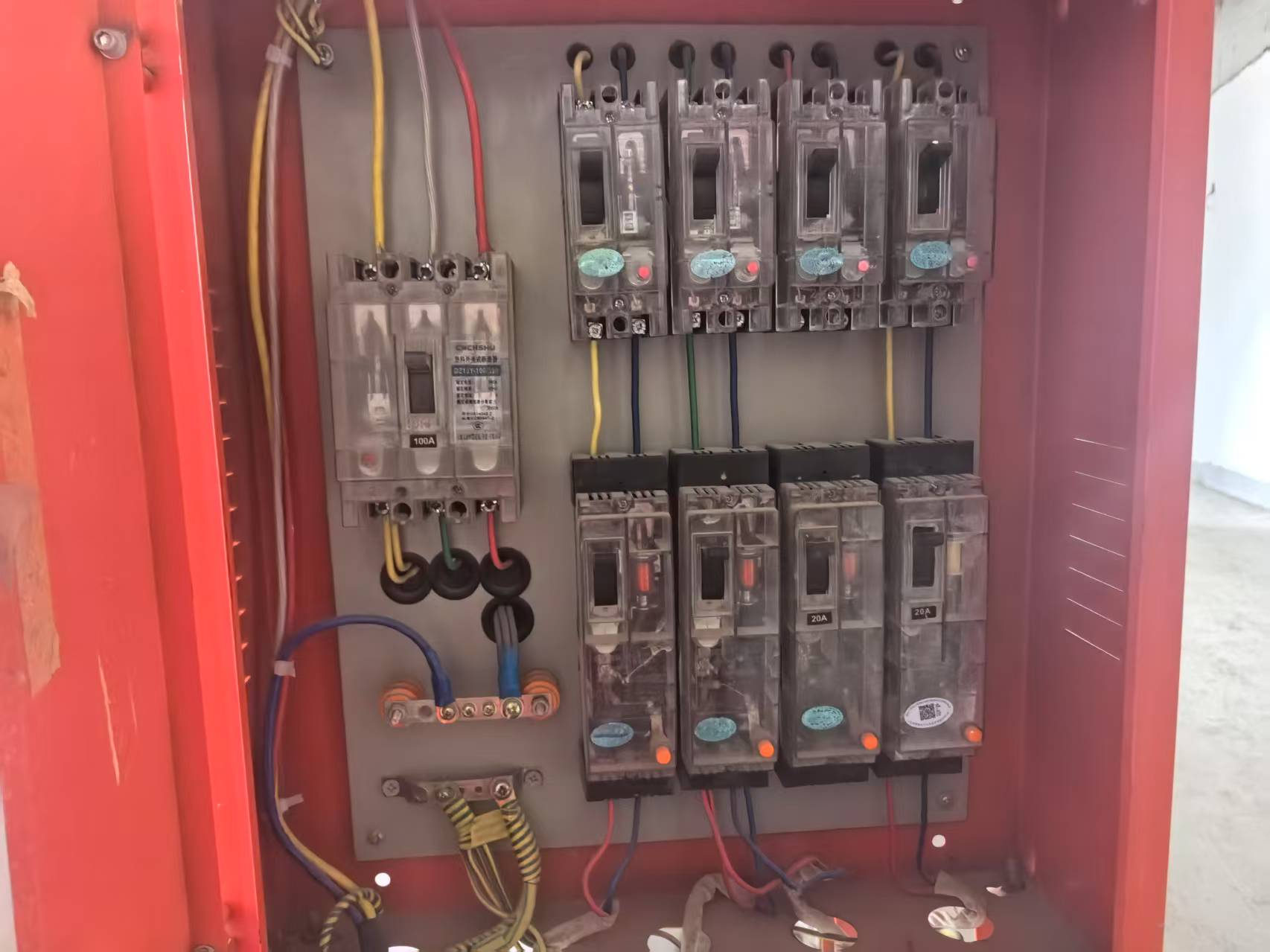 A.配电箱内同一开关下连接两个用电设备
