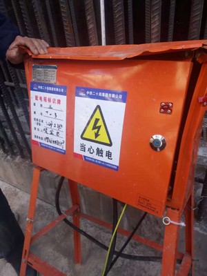B.配电箱线缆直接缠绕在脚手架钢管上。且无绝缘措施